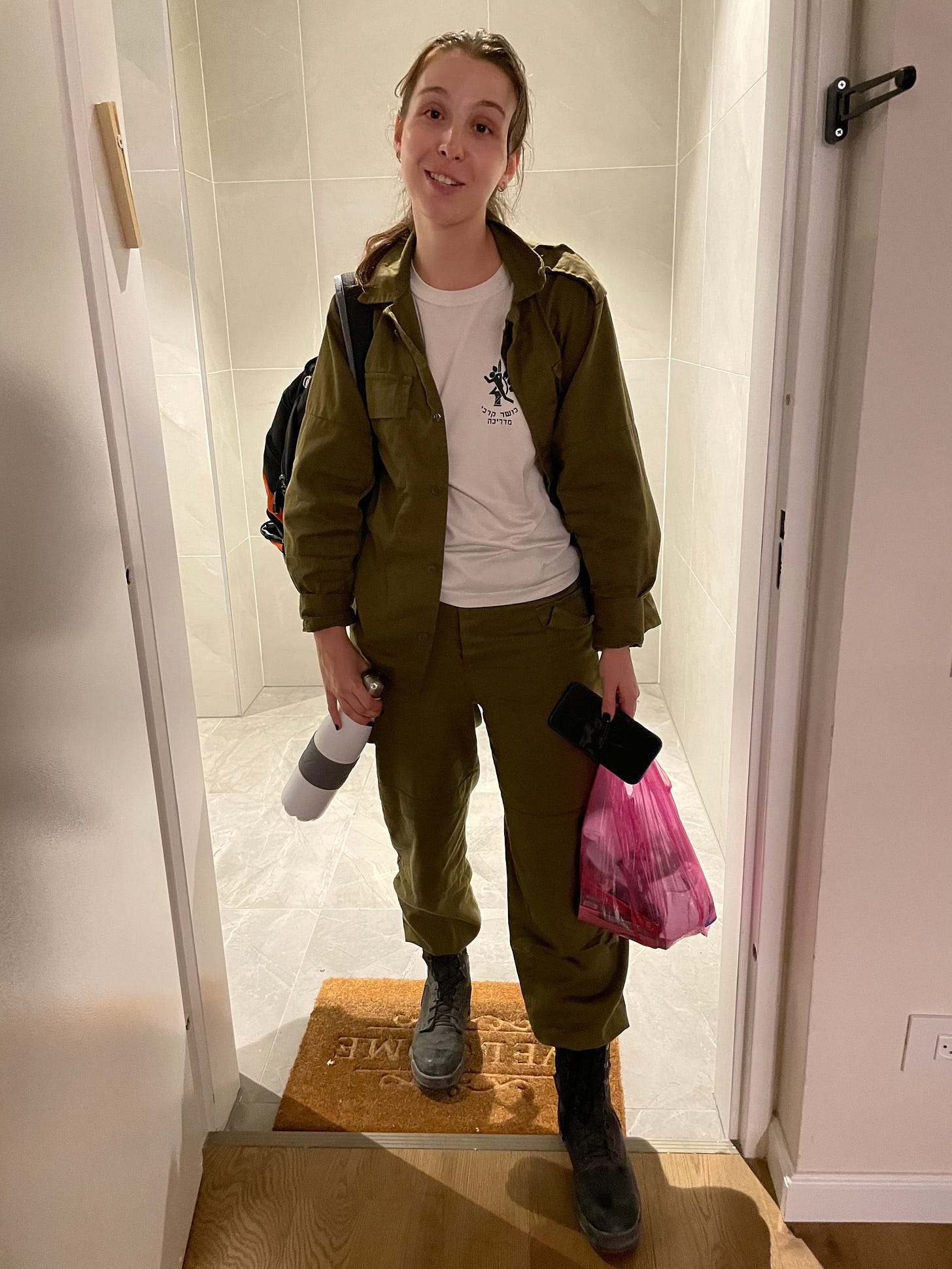 Our daughter was given an 8 hour leave of absence. She was so tired she’d forgotten the code to our apartment so she rang the bell. Her base is just over an hour a way so it was less than 6 hours we had her. For the first time in days, we could hug her, she showered, she ate real food. She slept in a real bed. And then she was up and ready to go.
